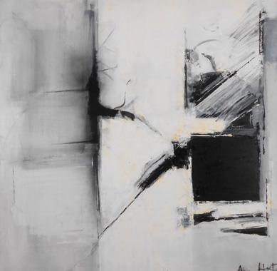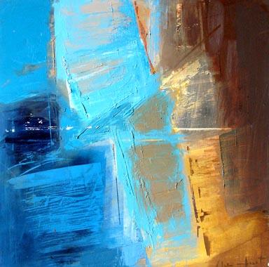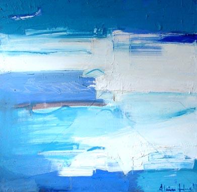 Les images qu ’Alain Huet nous donne ? voir sont plus proches du r?ve que de la r?alit?. Ces images apparaissent sur la toile parfois accidentellement d?tach?es de l’instinct de travail, de l’intelligence peut-?tre ? Par la magie de la couleur, du rythme, ces oeuvres deviennent des objets harmonieux et, si rien ne peut ?tre ni enlev? ni ajout?, alors le travail sur la toile est achev?, elle doit ?chapper ? son cr?ateur.