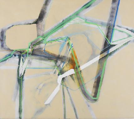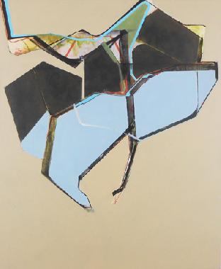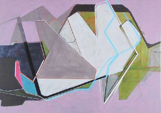 Les peintures sont cr??es par recouvrements et ajouts successifs, qui transforment l’image au fur et ? mesure, et qui cr?ent des strates, visibles ou non, donnant ainsi une profondeur au plan de la toile, ? travers laquelle l’oeil du spectateur peut voyager.