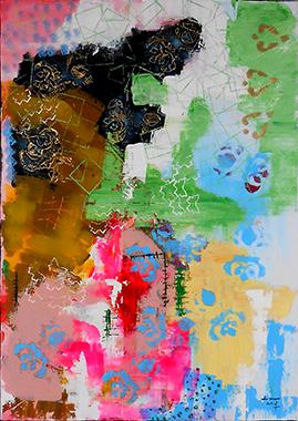 D?marche : Selma travaille essentiellement l’acrylique, notamment en utilisant la technique des coul?es. Les jeux de lumi?re et la transparence des objets la passionnent. Elle trouve son inspiration dans la nature qu’elle confronte avec ses sentiments pour cr?er des oeuvres abstraites.
